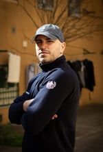 Sudadera azul Navy con bordados corporativos en blanco. Pecho y manga izquierda.
