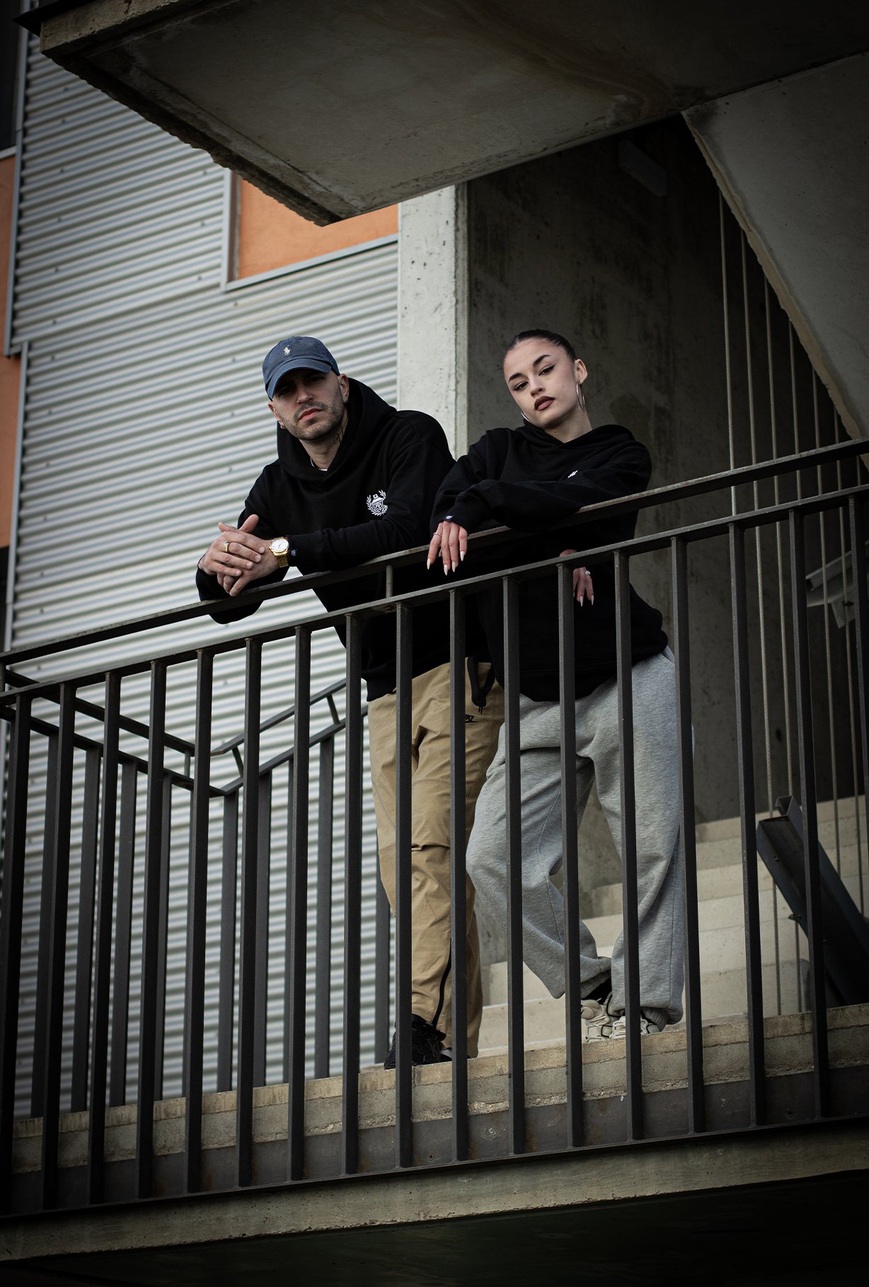 Sudadera negra con bordado blanco al pecho izquierdo.